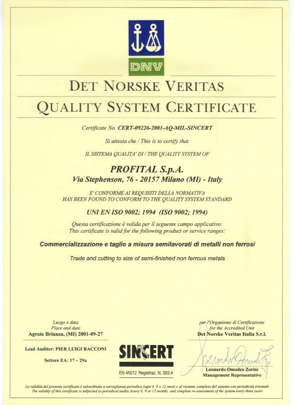 ISO 9002:1994date of issue : 27.09.2001